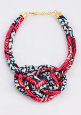 Collar pectoral textil de ancho nudo marinero. Disponible con cierre y cadena bañados en oro o plata