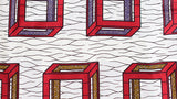 El gusto de los habitantes del norte de Nigeria por los tejidos claros y los decorados geométricos sirvieron de inspiración para el diseño de este estampado de cubos rojos, marrones y morados.