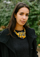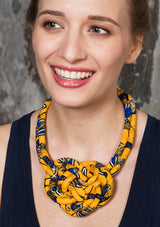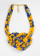 Collar pectoral textil de ancho nudo marinero. Cierre y cadena bañados en oro