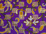 Los motivos florales de este estampado recuerdan que el origen de las telas wax se encuentra en Indonesia, donde los diseños vegetales eran muy populares en el arte textil.
