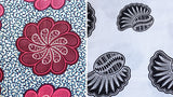 Los motivos florales de este estampado recuerdan que el origen de las telas wax se encuentra en Indonesia, donde los diseños vegetales eran muy populares en el arte textil.