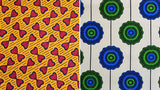 Muy popular en África occidental, el motivo declinado en verde y azul de esta tela se conoce como “record” o “gramophone disc” en los países de habla inglesa por su similitud con un disco. En los países francófonos se llama “Suzanne”, aunque se desconoce quien fue la mujer de la que tomó el nombre.