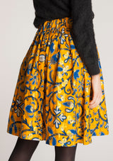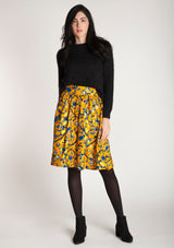 Falda fruncida de línea evasé y largo midi. Cintura ancha y ajustable de talle alto. Bolsillos laterales y forro interior