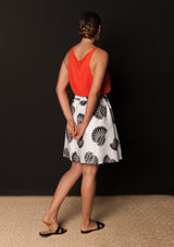 Falda de corte évasé y largo hasta la rodilla. Cintura ajustable fruncida de talle bajo. Forro interior