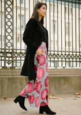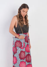 Los motivos florales de este estampado recuerdan que el origen de las telas wax se encuentra en Indonesia, donde los diseños vegetales eran muy populares en el arte textil.