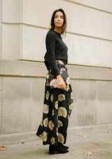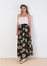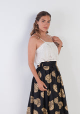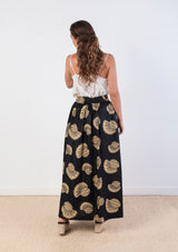 Larga falda vaporosa. Cintura ancha y ajustable de talle alto. Bolsillos laterales y forro interior