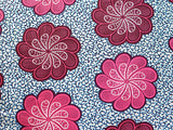 Los motivos florales de este estampado recuerdan que el origen de las telas wax se encuentra en Indonesia, donde los diseños vegetales eran muy populares en el arte textil.