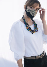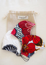 Al igual que nuestras prendas, los accesorios están confeccionadas a mano con telas African Wax-Print de algodón 100%.