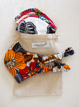 Al igual que nuestras prendas, los accesorios están confeccionadas a mano con telas African Wax-Print de algodón 100%.