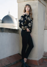 Los motivos florales de este estampado recuerdan que el origen de las telas wax se encuentra en Indonesia, donde los diseños vegetales eran muy populares en el arte textil.
