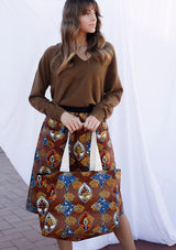 Los motivos florales de este estampado recuerdan que el origen de las telas wax se encuentra en Indonesia, donde los diseños vegetales eran muy populares en el arte textil.