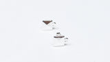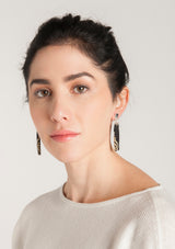 Pendientes con largo colgante textil rectangular. Cierre de zamak, disponible con baño de oro o plata