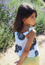 Los motivos florales de este estampado recuerdan que el origen de las telas wax se encuentra en Indonesia, donde los diseños vegetales eran muy populares en el arte textil.