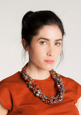 Collar textil largo con tres hileras de nudos trenzadas