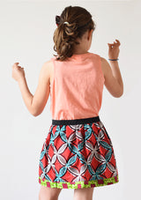 Falda acampanada de tablas con cintura elástica. Bajo con remate decorativo