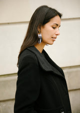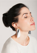 Pendientes maxi con pieza colgante textil ovalada. Cierre de zamak disponible con baño de oro o plata