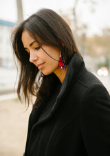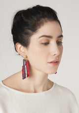 Pendientes maxi con pieza colgante textil ovalada. Cierre de zamak disponible con baño de oro o plata
